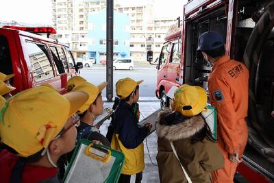 消防署見学(3年生) 投稿: 作成者 (02/19) 3年生が日立消防署の見学にいってきました。 消防士さんの服を着させてもらって嬉しそうです。 消防車やはしご車などもこんなに近くで見させていただきました。 私たちの町を守ってくれている皆さんに敬礼! -