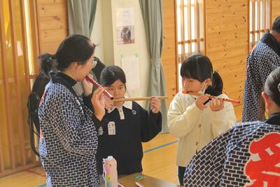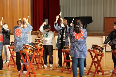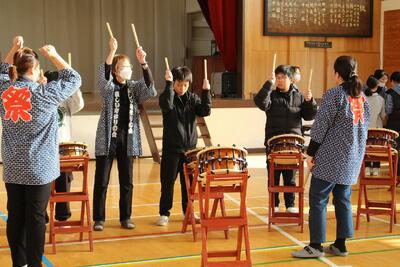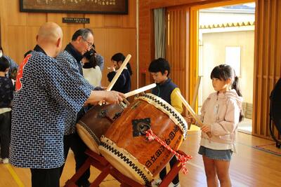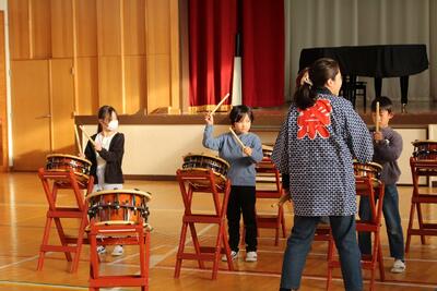 和太鼓体験教室 投稿: 作成者 (11/26) お囃子隊の皆様にお越しいただき、和太鼓鑑賞、体験教室を行いました。 ◯6年生 息を合わせてたたきます。 ◯3年生 とても真剣にお手本を見ています。 最後には一曲演奏できるまでになりました。 お囃子隊の皆様、ありがとうございました。 -