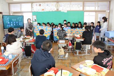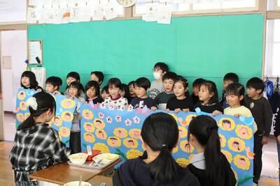 1・2年生から6年生にプレゼントを渡していました。
