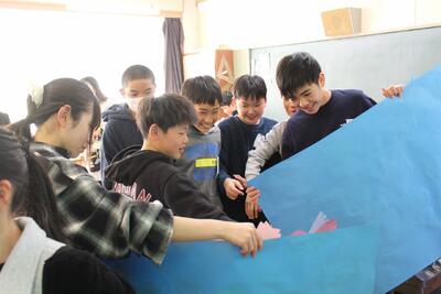 自分たちの顔と6年生の顔を描いてプレゼント!