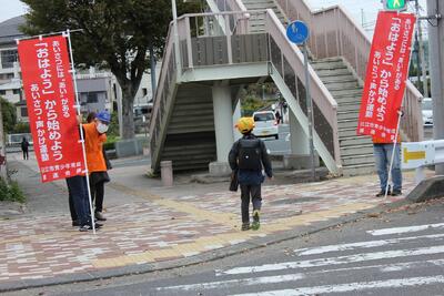 中学生や地域の方々と一緒にマナーアップキャンペーンを行いました。