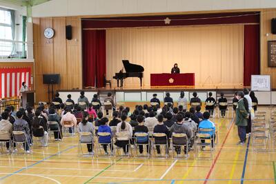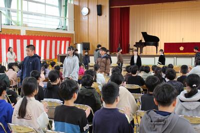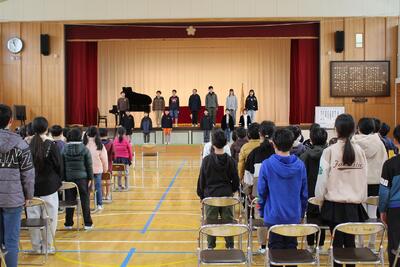 下級生が6年生を送る会のために歌や呼びかけを練習している声が響く校舎と